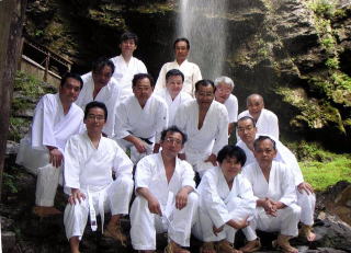 ぶどう畑や八ヶ岳の車窓を楽しみ、山荘に到着。道着を着、山道を登り、つり橋を渡ると新滝が燦然と現れる。50mくらいあろう落差に若干畏れを抱きつつ、あら塩で清め、般若心経を唱える。滝に日が差し虹も掛かる中、2番手で合掌し、水をかぶると、去年ほど冷たくないと感じ、腹式呼吸を意識しゆっくり滝壷に歩を進めた。意外と水量もなく冷静に入れた。二日目、午前、午後と、序々に長く入れるようになり、水の強さ、やわらかさなど、三回の違いも感ぜられ滝行を楽しむという目標が達せられました。