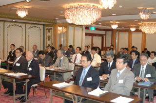 第一部の議案審議では、村下代表幹事が議長となり、平成15年度事業報告・決算、平成16年度事業計画・予算案および役員定数変更の3議案全てが承認された。議案審議終了後、永池会長より任命された新役員(別掲・次頁)が紹介され、三橋新代表幹事をはじめ全員が抱負を発表。短い中にも熱い想いが伝わり、マスターズのさらなる発展が期待できる頼もしいコメントが続いた。