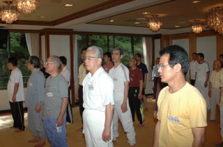 翌日、5時25分には全参加者が会場に参集、5時30分から村下代表幹事のリードで「生命の覚醒」を唱和して研修が開始された。