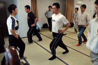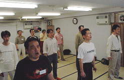 心身開発トレーニング 準備体操風景 トレーナー:藤田和弘氏 |