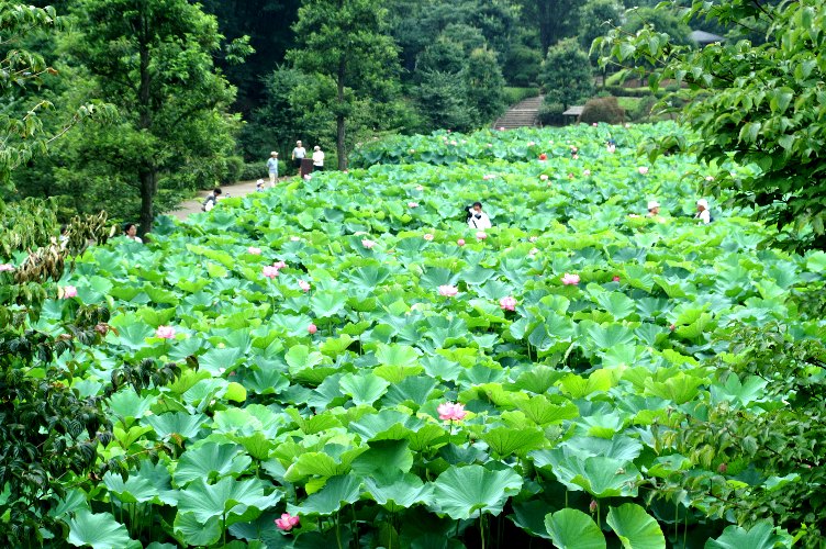 いま、この薬師池公園のハス田には、2000年も前の種から発芽したというハスの大輪が咲かせています。この写真はこのハス田の全景ですが、マスターズ・ブログには、見事な大輪の写真をアップしていますので、ご覧ください。 こちら http://www.schole-masters.org/blog/index.php?e=117